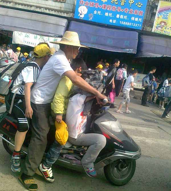 這位大爺真是伸手不凡呀,電動車上竟載著3個小孩,4人像麥當(dāng)勞“巨無霸”一樣把整個電動車擠得滿滿當(dāng)當(dāng)。