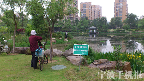 中國寧波網(wǎng)手機(jī)記者158****1750:今日中午鄞州區(qū)后廟新村南側(cè)的“古祠公園”里一群“釣者”在立著“放生池內(nèi)禁止垂釣”的指示牌旁下桿垂釣,見此境遇說什么好呢……請(qǐng)釣魚者自我約束點(diǎn)為好!