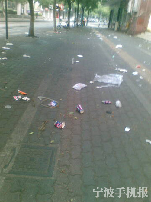 中國(guó)寧波網(wǎng)手機(jī)記者135****6783:鎮(zhèn)海大三江超市門口天天這個(gè)樣子,一位每天辛苦打掃垃圾的阿姨說:這些垃圾是晚上買小吃留下的。阿姨很生氣得說,不是不要他們買,買完了要是把多的垃圾收拾一下也好!