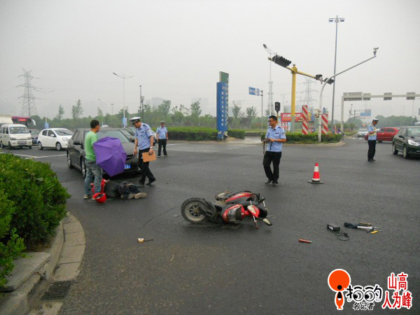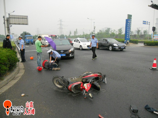 中國(guó)寧波網(wǎng)手機(jī)記者139****8094:6月1日早晨7點(diǎn)45分,在世紀(jì)大道由北向南通途路十字路口,汽車(chē)撞上電動(dòng)車(chē),民工被撞飛在地,動(dòng)彈不得,天還下著小雨,另一民工為傷者打著雨傘等待救援。五分鐘后交警很快來(lái)到了現(xiàn)場(chǎng)救援傷者。唉!不管是開(kāi)汽車(chē)的還是騎電動(dòng)車(chē),上班趕路不可心急,各行其道安全不可忘!