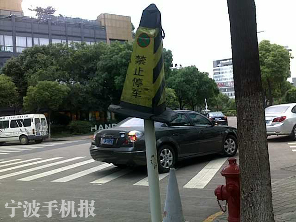 中國寧波網(wǎng)手機記者139****8094:在江東華嚴街與大戴街口,有“好事者”將馬路上的“禁止停車”的橡皮路墩,戴到了路邊咪表的頭上,不知是“方便”自己,還是“發(fā)泄”他人呢?