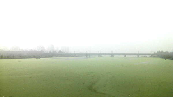 早上經(jīng)過華辰大橋,江面漂滿了浮萍,就像一條綠毯子將水面覆蓋得嚴嚴實實,姚江似乎無法“呼吸”,快要“窒息”了。