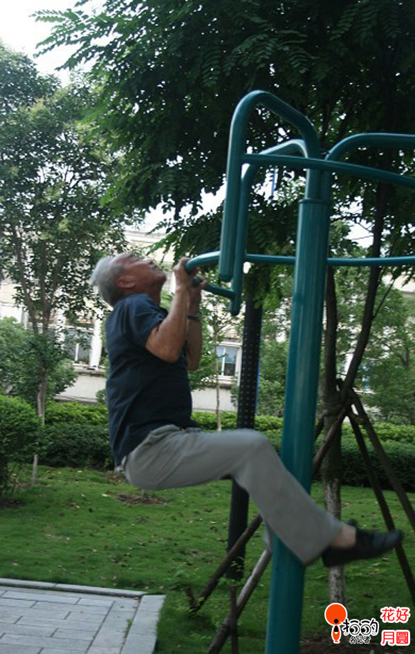 “大伯,您還是悠著點(diǎn)吧”,過于劇烈的運(yùn)動(dòng)容易發(fā)生意外。還有,健身器材也容易受傷哦。