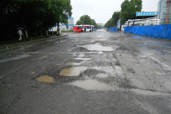 中國寧波網(wǎng)手機記者139****8094:持續(xù)的陰雨,引發(fā)不少路面積水,此處為清水橋路一段破損路面,破損程度已經(jīng)比較嚴重,此現(xiàn)象現(xiàn)在隨處可見,這樣的路面凹凸不平,存在隱患!走過路過的行人車輛可要注意安全了。唉!都是雨水惹的禍!