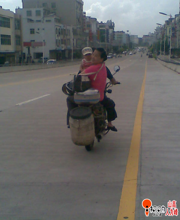 中國(guó)寧波網(wǎng)手機(jī)記者139****8094: 城郊,摩托車帶人超載更是習(xí)以為常。這不,一輛摩托車上載著老婆孩子,一家三口悠然地奔馳在329國(guó)道上……瞧這老婆的坐姿和懷抱的孩子,誰見誰不提心吊膽。唉,今天你安全了并不代表你明天的幸運(yùn)呀!這哥們騎車不寂寞吧!