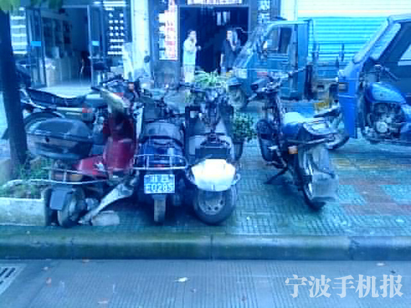 中國寧波網(wǎng)手機(jī)記者158****7959:這是發(fā)生在寧?h興海中路的一家摩托車修理店面前,在你眼前的是一排破廢摩托車,店主似乎想以此顯示店服務(wù)內(nèi)容,竟如此招搖地開起了“車展”!這不僅私自占用了公共土地,同時(shí)與城市的發(fā)展宗旨背道而行!如果你看得仔細(xì)的話,旁邊還有一筐手栽蔥,在殘破的泡沫箱的包圍下,確實(shí)令人堪憂!