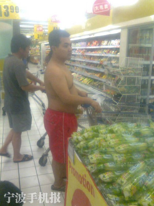 中國(guó)寧波網(wǎng)手機(jī)記者152****1951:昨晚上樂(lè)購(gòu)?fù)妫匆娨晃幌M(fèi)者赤膊逛超市,有點(diǎn)不雅,希望超市以后可以勸導(dǎo)這樣的不文明消費(fèi)者。!