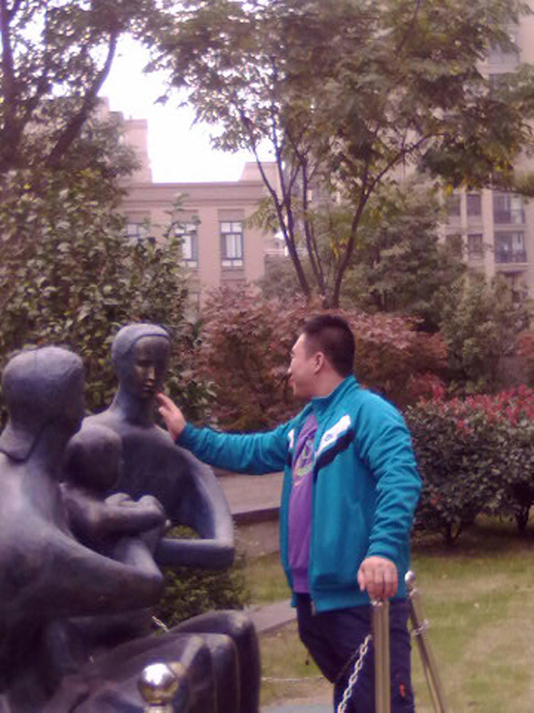 此人閑來無事,停跓在小區(qū)塑造的一對泥人夫妻身邊,時重時輕地用手打他們的臉。既使心中有氣也無需如此發(fā)泄,真夠無聊的。