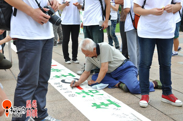 中國寧波網(wǎng)手機(jī)記者159****1750:“七•一”上午,寧波工程學(xué)院的學(xué)員們在中山廣場宣傳綠色低炭環(huán)保理念,過往的市民紛紛在“綠色低炭環(huán)!遍L卷上簽名支持綠色低炭活動!