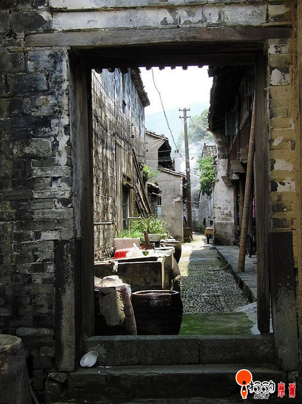 這是奉化市溪口鎮(zhèn)班竹村的一棟老房子,從大門看過去,里面房子的炊煙正在升起,幾百年的滄?虅澰诜课莸膲Ρ谏。