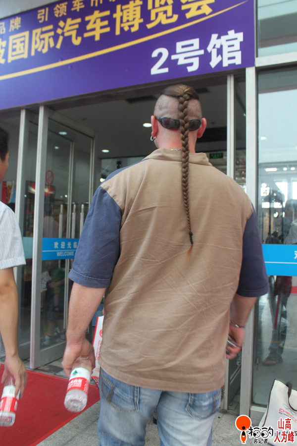 潮人老外逛車博,一束小辮細又長,墨鏡后戴有點怪,卻似時尚且風(fēng)流!