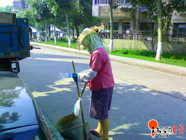 中國(guó)寧波網(wǎng)手機(jī)記者星姐: 七月流火,將近中午十一點(diǎn),滾燙的太陽(yáng)照的人喘不過起來,社區(qū)保潔員仍在辛勤地工作。誰(shuí)說保潔員不愛美?女人愛美的天性讓她們做好了防曬全副武裝。