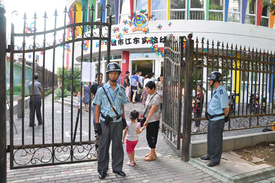 中國寧波網手機記者愚偶:9月1日幼兒園開園了,上午八時,家長們準時送新入園的小朋友到幼兒園。第一天離開孩子的家長們,心情比孩子更緊張,新生下午3點半下課,但家長們提前焦急地等在了園門口,時間一到,家長們迫不及待地沖進大門,但還得刷卡進園有序地接走自已的孩子!