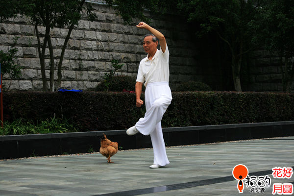 清晨起早,帶上自家的雞煉起金雞獨(dú)立,健身、遛雞兩不誤,愜意呀。