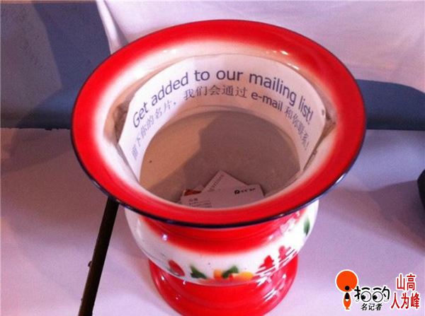 信息時(shí)代,名片滿天飛,于是“痰盂”派上了新用途。呵呵,名片給不給,還得悠著點(diǎn)!