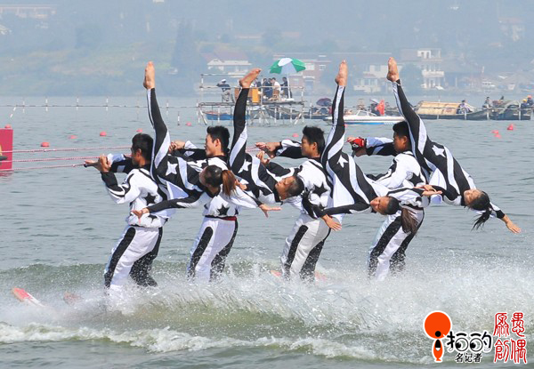 第三屆中國湖泊休閑節(jié)在寧波市東錢湖舉行,15日舉辦了龍舟邀請賽,賽程過半,上演了精彩的水上滑板節(jié)目,贏得岸上觀賞者的陣陣掌聲。