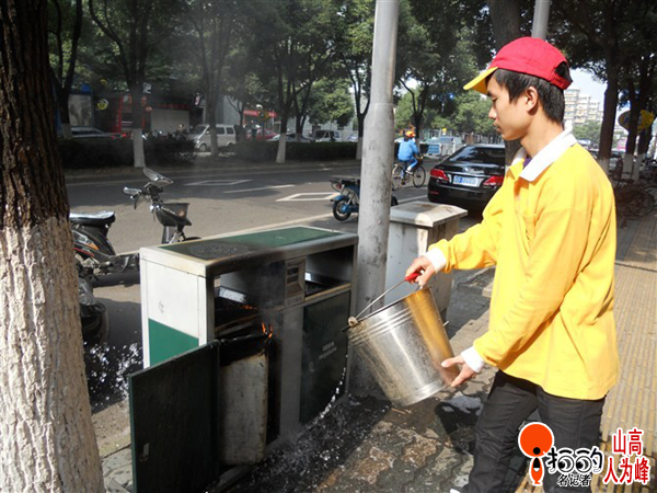 中國寧波網(wǎng)手機記者山高人為峰:今天中午(12:30)朝暉路,路邊垃圾箱著火,一騎電動車路過的大姐,下車直奔旁邊的永和豆?jié){店找水,店里員工知道后立即提水澆滅,未引起更大的后果。起火可能是路人扔下未熄滅的煙蒂引起的,還得請煙民們不要隨便亂扔未息滅的煙蒂,點點煙頭總可以引發(fā)火災(zāi)的喲。ㄏ蚰俏幌萝囌宜拇蠼阒戮矗。