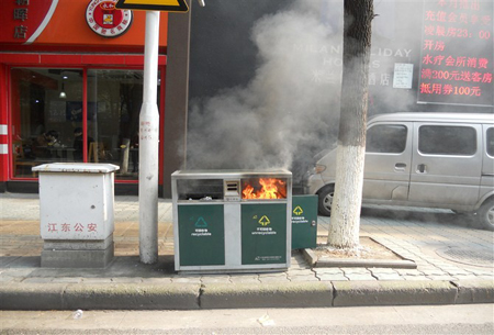 垃圾箱起火 路人齊相助