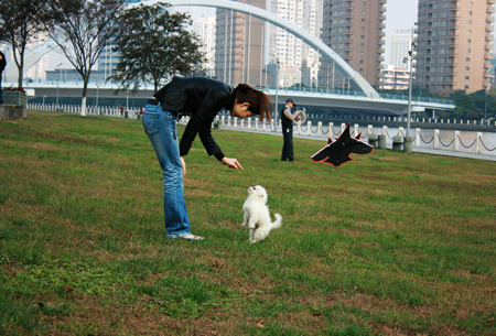 鼓樓永豐庫(kù)遺址公園廣場(chǎng),溫暖的陽(yáng)光照耀著休閑的人們,兩只小狗正在嬉鬧,一黑一白惹人喜愛!