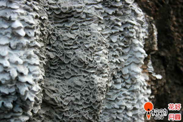墻體上水泥石灰漿受冰凍后凝結(jié)而成的結(jié)晶體,就像野磨菇簇?fù)淼厣L(zhǎng)著,充滿了天然去雕飾的自然味道。