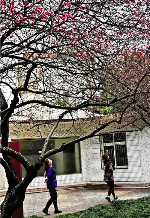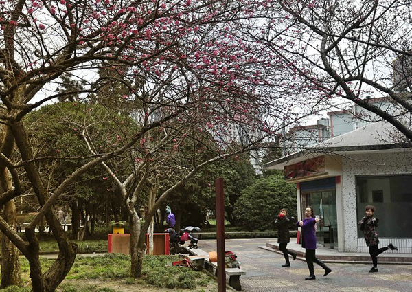 下了N天的雨終于停了,太陽出來了!花兒開得正歡,人們又來到廣場上鍛煉了!