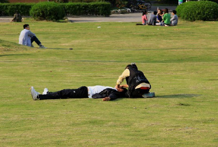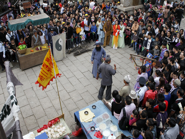 后來問了影視城的工作人員才知道他們正在推出“看新版《水滸傳》游象山影視城”活動,游客在逛影視城的同時可以看他們工作人員表演的《楊志賣刀》、《李逵審案》、《武松大鬧獅子樓》等影視劇經(jīng)典片段。
