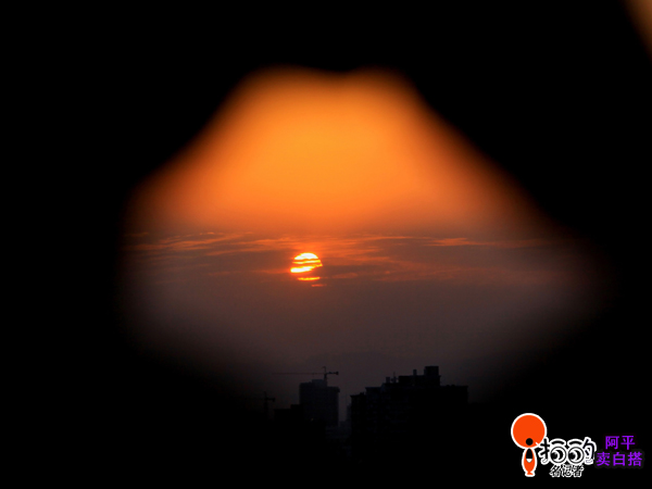 中國寧波網(wǎng)手機(jī)記者阿平賣白搭:昨日傍晚的時候夕陽很好,我在單位大樓樓頂尋找拍點(diǎn),但實(shí)在找不出好的景色,就用自己中指和大拇指圈成一只大眼睛,獨(dú)自欣賞落日!
