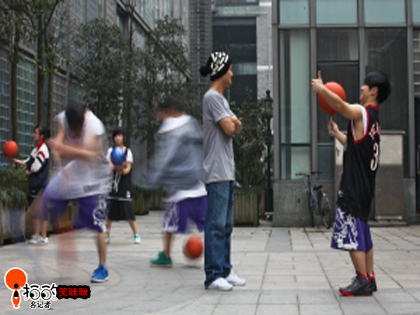 3月17日午后,在老外灘,一群男生和女生在玩花樣籃球,那些動(dòng)作挺酷的。