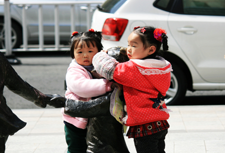 在春意時濃的天一廣場,一個穿著寶藍色毛衣的小女孩揮舞著小碎花絲巾翩翩起舞,是不是有一種“最炫民族風(fēng)”之態(tài)呢!