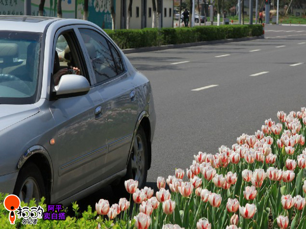 江北區(qū)大閘路上的郁金香很漂亮,可有的司機停車在那里拍照,小心追尾!