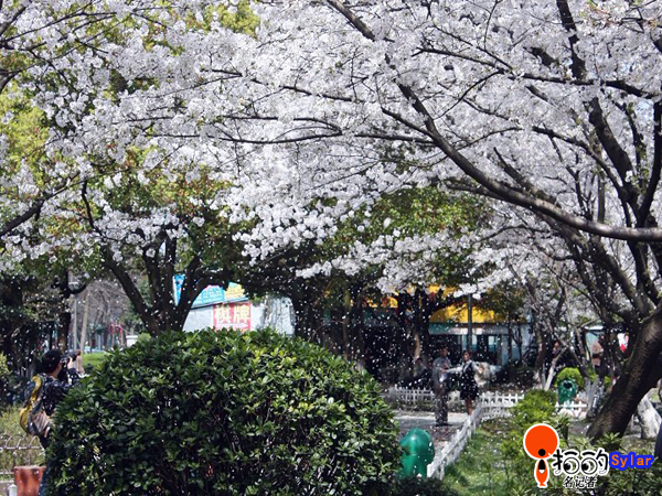 海曙公園,突然間的一陣風(fēng),櫻花隨風(fēng)翩翩起舞,好似下了一場(chǎng)雨,地上鋪滿片片花瓣!