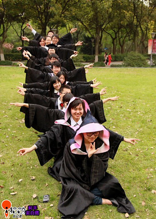 上周日,寧大的學子們在拍畢業(yè)照,瞧他們的千手觀音造型,挺可愛的。