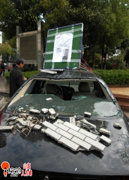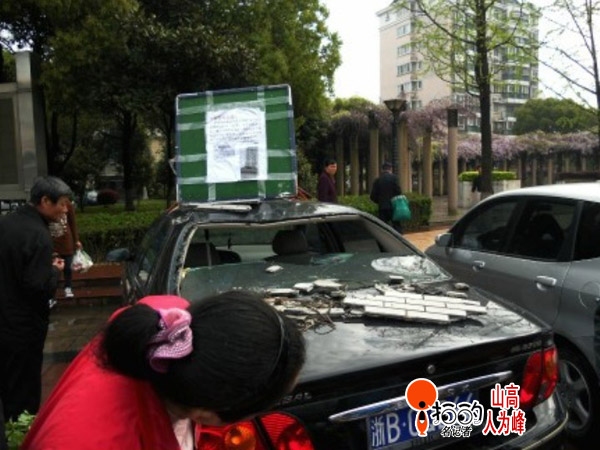 中國寧波網(wǎng)手機(jī)記者山高人為峰:4月3日凌晨發(fā)生在常青滕小城226號18層外墻瓷磚脫落,砸中了樓下別克轎車,車損嚴(yán)重(寧波晚報,NBTV看看看也有報道)事件,至今無處處理,(開發(fā)商不問,物業(yè)不管,保險不賠)車主在車頂豎桌立牌,“展示”被砸車輛......傷不起的無奈!