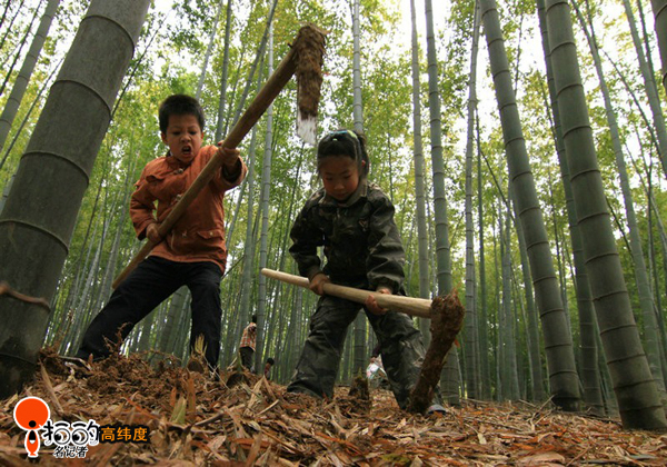 :上周末,我?guī)Ш⒆觽內(nèi)M街山區(qū)挖春筍,那里的竹子很多,四周飄著竹筍的清香,圖為孩子們正積極“戰(zhàn)斗”中。