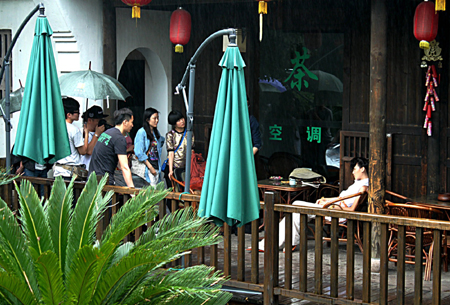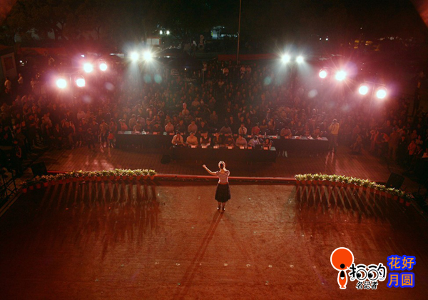 中國寧波網(wǎng)I拍記者花好月圓:每個人看表演都會在舞臺前面,舞臺背后會是什么樣子呢?我在舞臺背后找到一個制高點(diǎn),這個是絕佳的位置,從這里望下去觀眾一覽無余,場面挺大,光影效果也不錯!