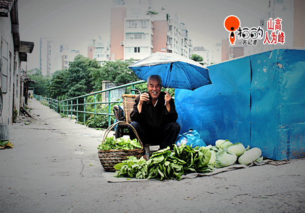 大爺在路邊守?cái)傎u自己種的青菜,自產(chǎn)自銷,倒也樂在其中!