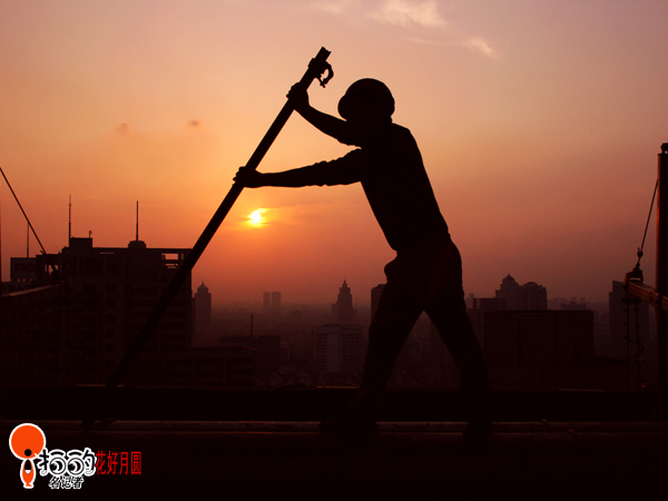 中國寧波網(wǎng)手機(jī)記者花好月圓:一次偶然機(jī)會(huì)和同行去寧波正在建設(shè)尚未封頂?shù)娜龑殗H金融大樓樓頂,恰好逢到夕陽西下的金黃時(shí)刻,一位建筑工人正在撬一個(gè)建筑材料,遠(yuǎn)處是寧波在紅色夕陽下的美麗城市景觀,工人的辛勤勞作與大自然的景色頓時(shí)渾然一體。