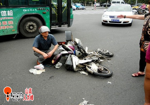 中國寧波網(wǎng)i拍記者山高人為峰:6月21日早晨6點(diǎn)50分,在江東大步街與新河路口,756路公交車右轉(zhuǎn)彎擦倒直行電動(dòng)車,車輪從電動(dòng)車碾壓上過去沖向隔離欄后停下,“神奇”的是,電動(dòng)車被碾壓粉碎,而騎車的大叔卻一點(diǎn)沒事,路人在為這位大叔“慶幸”人沒事的同時(shí),還得記。洪_車的騎車的,總還是安全第一才萬幸。