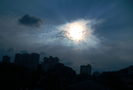 中國(guó)寧波網(wǎng)i拍記者山高人為峰:傍晚,太陽(yáng)被云遮起的時(shí)候,不是黑夜......薄陽(yáng)隔著云層,透漏四射,卻也不是白天......天地間縱有那不變的守望,在瞬間流幻……