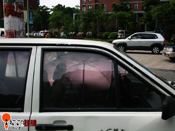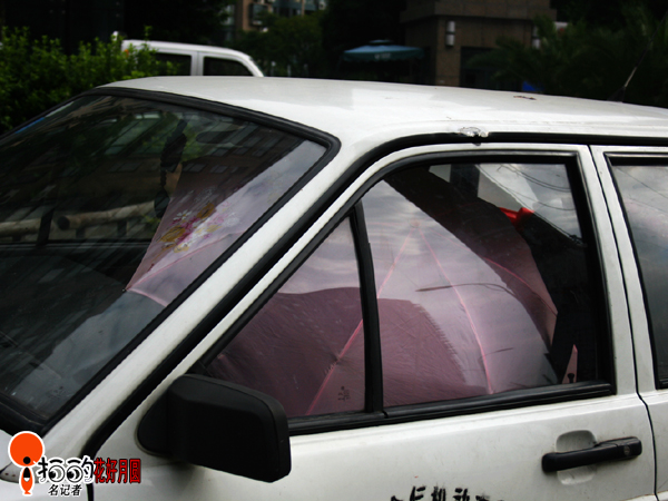 這持續(xù)的高溫天,人受不了,這車(chē)也受不了,瞧這車(chē),車(chē)主把傘撐到了車(chē)?yán)锝o車(chē)放防曬。