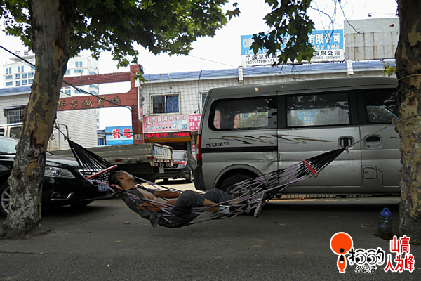 炎炎夏日午后,寧穿路邊,有人樹蔭下“吊床”午休,些許小睡,卻也悠閑!