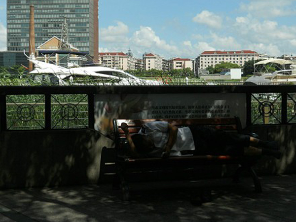 中國寧波網(wǎng)“i拍”記者山高人為峰:外灘邊,一位保安大哥橫躺在路邊的座椅上睡覺。雖說大中午休息一下,無可厚非,可這地方,選得實在不妥。不知道這位保安所在的工作單位,能不能考慮一下,為這些工作人員提供一個合適的午休場所。