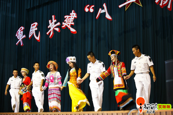 中國寧波網(wǎng)“i拍”記者笑瞇瞇:7月29日下午,象山石浦南田島上傳來嘹亮的歌聲,駐甬部隊某部與寧波東方民族歌舞團(tuán)共同舉辦的軍民“八一”聯(lián)歡會熱鬧舉行。圖為聯(lián)歡會現(xiàn)場。