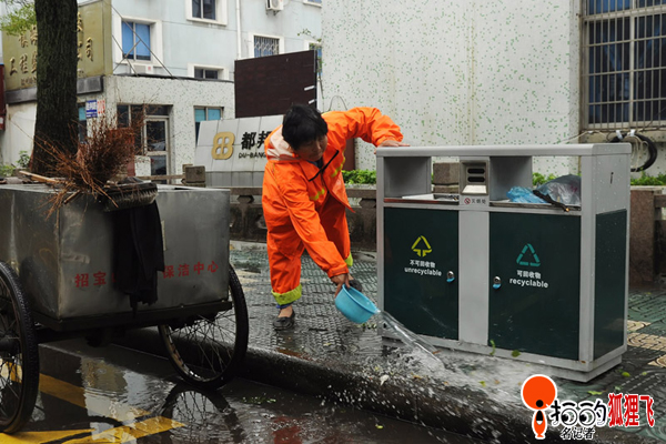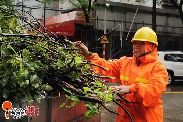 8月8月寧波鎮(zhèn)海街頭,由于受強臺風“海葵”影響,街頭一片狼藉,這下忙壞了各清潔工人,他們一清早就開始掃垃圾、清樹枝、搬路礙了,圖為清潔工人們忙碌的身影。
