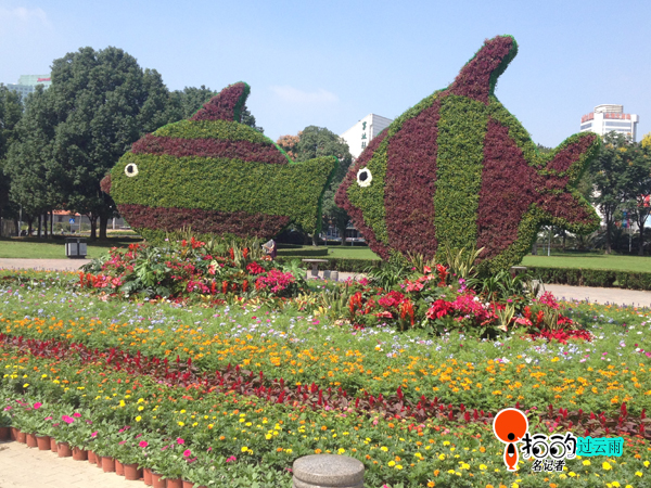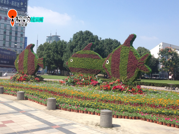 為迎接國慶節(jié)的到來,昨天位于三江口附近的時(shí)代廣場花卉布置完成;▔3條鮮花拼組而成的可愛、靈動(dòng)的魚寶貝作為主景,設(shè)置形成“魚悅·魚躍”景點(diǎn),景點(diǎn)周圍采用了海棠、矮牽牛、醉蝶花、波斯菊、五色梅、鼠尾草、向日葵等十余種花卉近8萬盆,以自然生態(tài)的組合營造了熱情、祥和的節(jié)日氣氛。