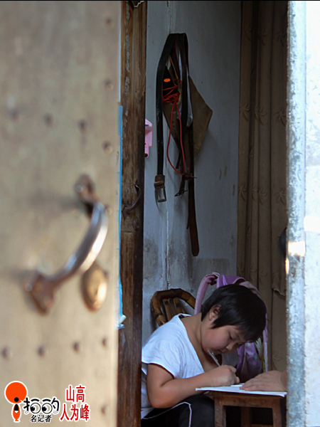 假日里,小女孩依然在家門口認真的寫著作業(yè)……
