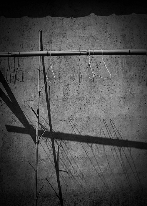 :秀水街,圍墻邊,是誰(shuí)把影子剪輯,空置的涼衣架,眺望著陽(yáng)光,形影相印,陳設(shè)小巷生活的留影。