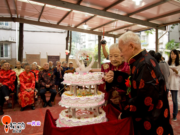 最浪漫的事就是和你一起慢慢變老……執(zhí)子之手,與子偕老,風雨同舟七十載!圖為王家社區(qū)在重陽節(jié)來臨之際為眾老人過生日辦婚禮。