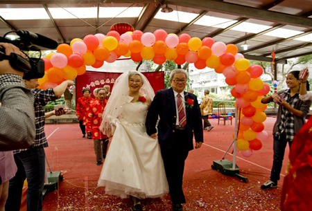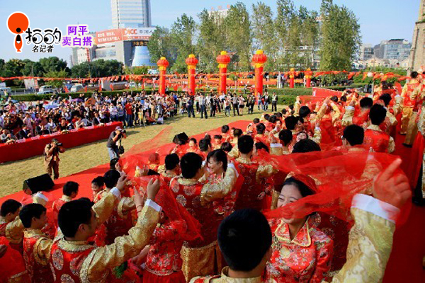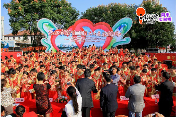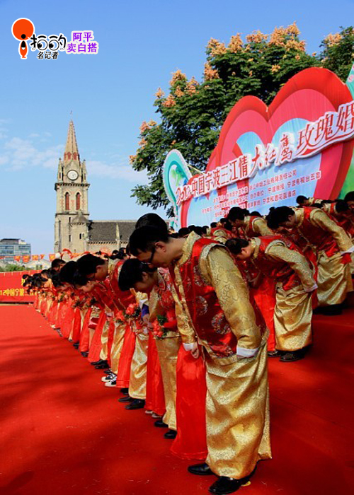 中國寧波網(wǎng)“i拍”記者阿平賣白搭:愛在寧波、情到永遠(yuǎn)。2012中國寧波三江情大紅鷹玫瑰婚典10月20日在寧波老外灘隆重上演。