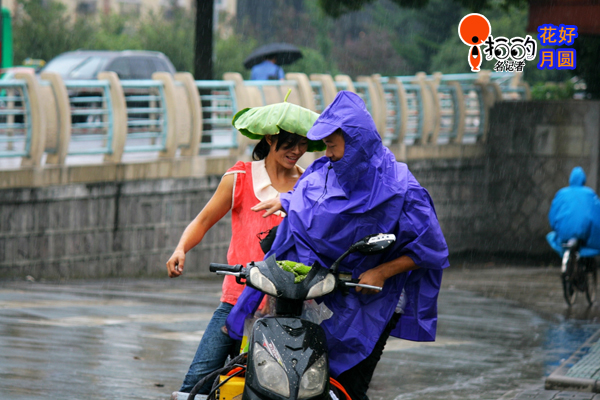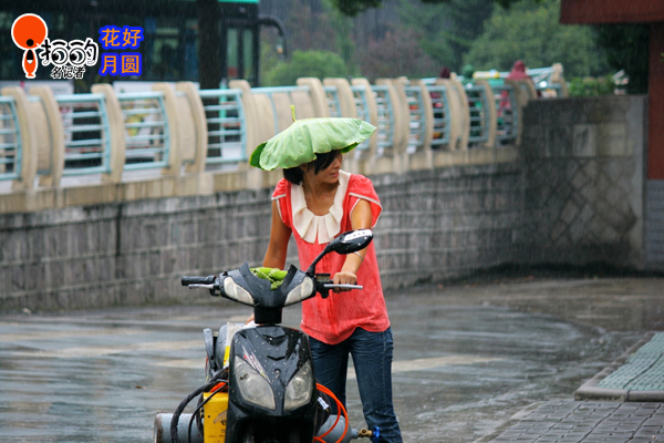 下雨了,美女自有妙招!戴上我的“遮雨帽”,怎么樣,酷不?
